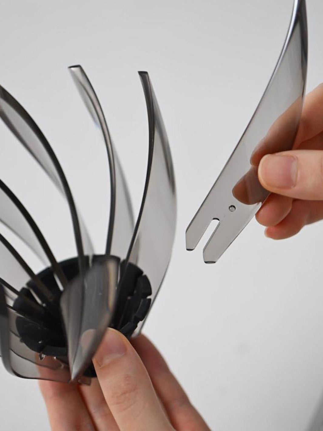 Available interchangeable ribs in multiple colours for a personalized touch.Flat-Pack Assembly