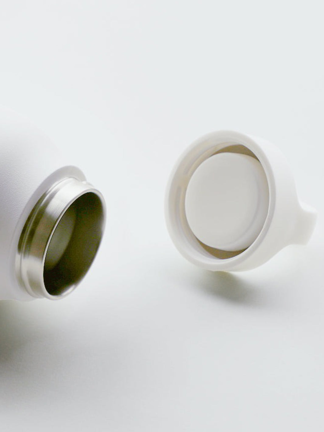 KINTO WATER TUMBLER provides convenient and smart support for daily hydration. Its double-walled vacuum structure provides excellent heat and cold insulation, preventing ice from melting and keeping drinks at the perfect temperature for extended periods. It can also hold carbonated beverages. The inner bottle is as thin as possible, resulting in a lightweight and compact design. The lid opens and closes easily with a single turn, and features a handle that fits comfortably in your hand, making it easy to carry around.