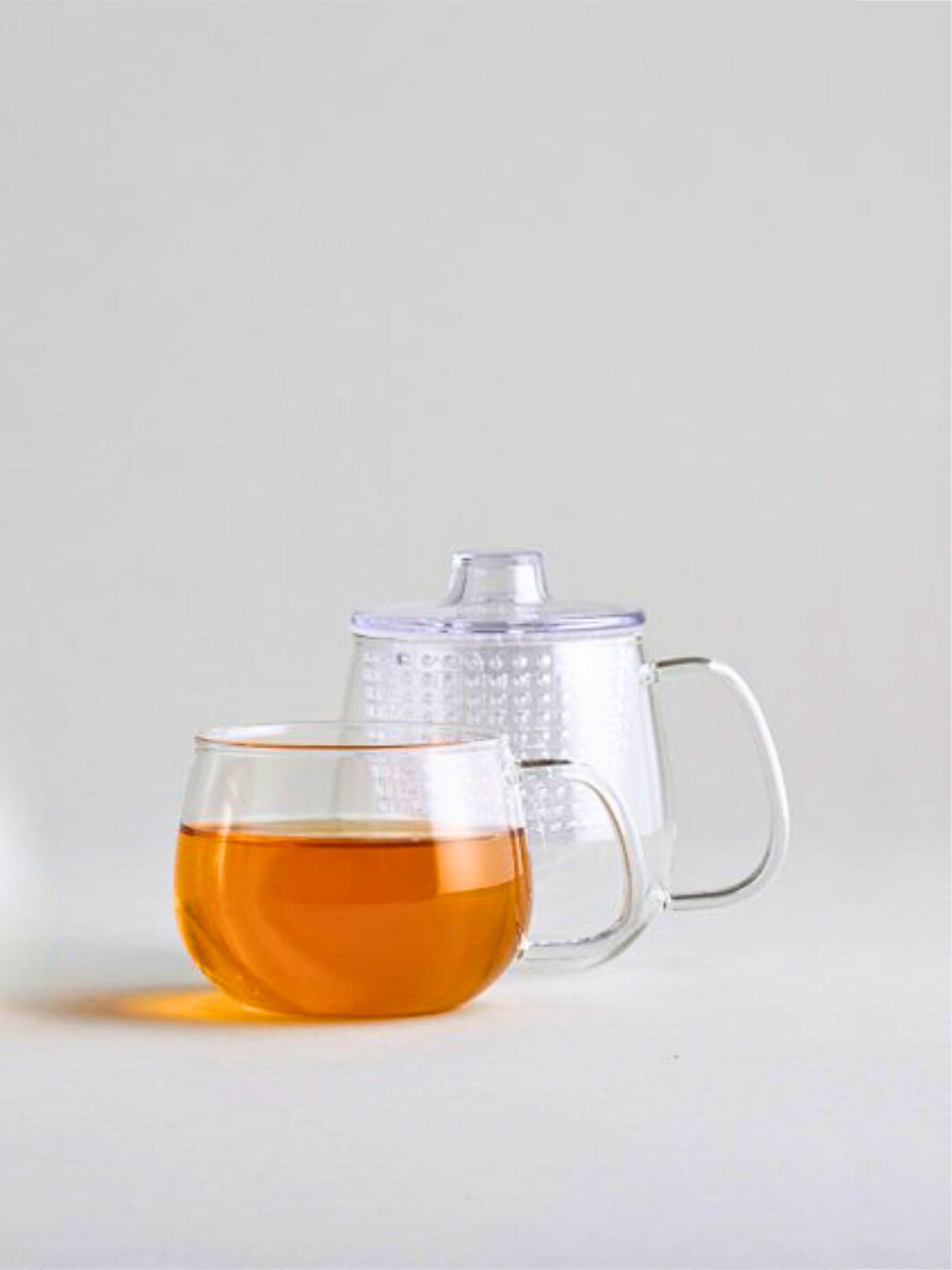 The 450ml (15oz) KINTO UNITEA Unimug integrates harmoniously into any landscape or scene. The glass cup showcases the beauty of teas inside, letting you observe tea leaves as they bloom. The large arched design of the handle allows you to grip firmly and comfortably. The beauty of the product is fitting for any tea, from oolong to matcha to assam!