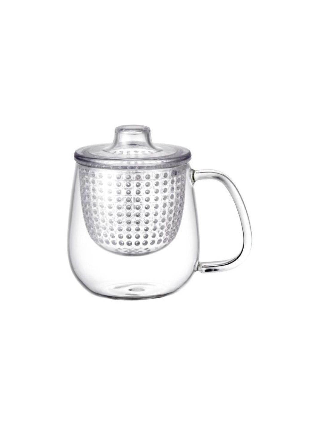 With its familiar, relaxed form, UNITEA blends seamlessly into any space or setting. The transparency of the cups and jugs makes drinks look beautiful, allowing you to enjoy watching the tea leaves slowly open. The large handles that allow for a firm grip and the minimalist structure transform the image of delicate glass teaware into a casual one.