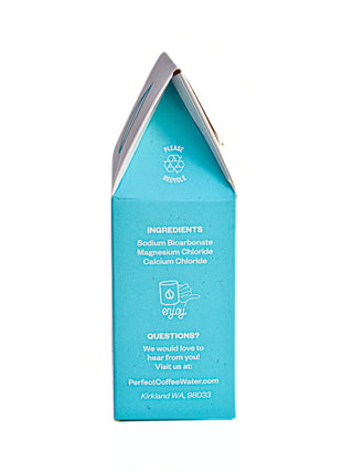 This box contains 15 mineral sachets that condition 1 gallon (4 litres) of water each. With 15 gallons (60 litres) of Perfect Coffee Water you can brew up to 160 12oz (355ml) cups of coffee!