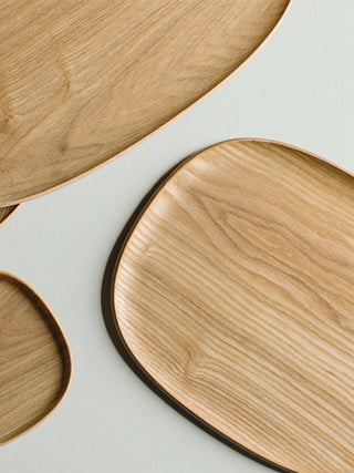 The 265mm x 215mm (10.6in x 8.6in) KINTO UNITEA Nonslip Tray adds a sense of sophistication to any glass or vessel that rests on top of it. The organic shape with a natural wood grain offers a warm and gentle ambiance.